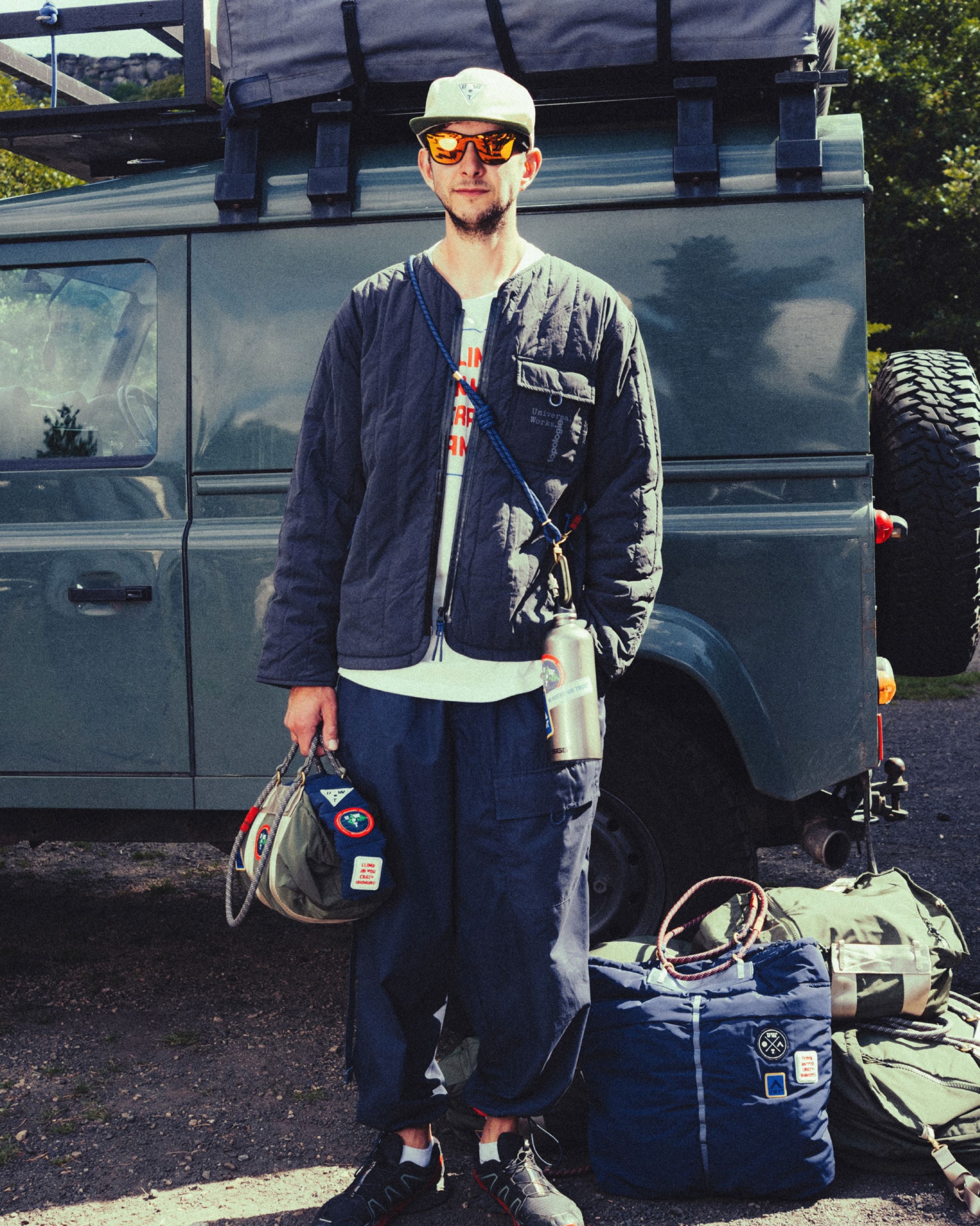 アパレルアイテムは当時の気取らない機能的なスタイルを取り入れつつ、レトロなカラーリングと刺繍パッチで個性をプラスしました。